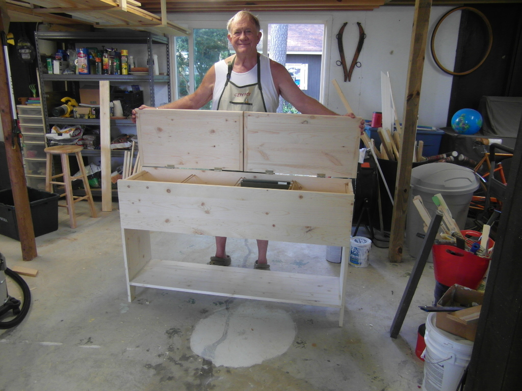 This is a replica of an early American flour and meal bin. It is now converted to a file cabinet. Made for our daughter Andrea